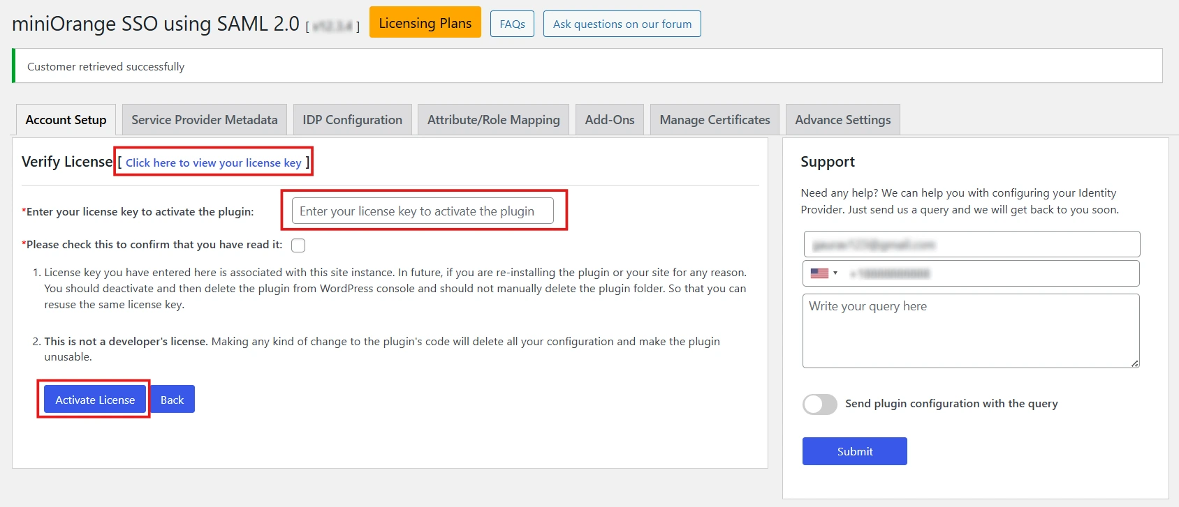 Note: Trouble in activating the premium plugin? contact us at samlsupport@xecurify.com